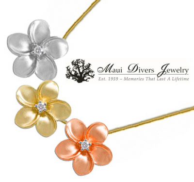 今年、50周年を迎えたマウイダイバーズジュエリーでは、プルメリアコレクションの美しいペンダントトップを特別価格$199.00(通常価格$295.00)で販売しています(チェーンは含まれていません)。