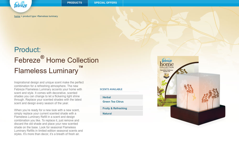 ファブリーズホームコレクションから新発売になったフレームレス ルミナリー(Flameless Luminary)は、キャンドルの灯りを表現したゆらゆらとした柔らかな光彩が幻想的な世界を浮き上がらせる行燈(あんどん)をモチーフにして作られた置き型タイプのルームフレグランスです。