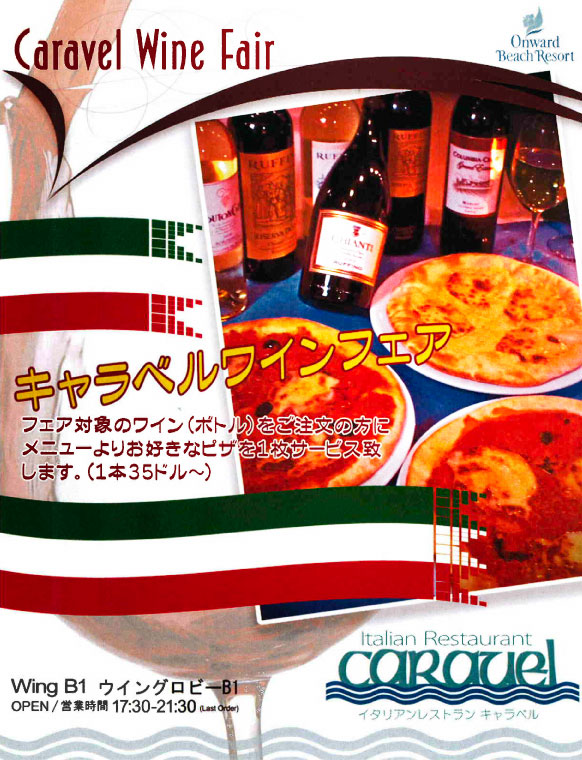 そんなワイン愛好家におすすめなのが、先週の金曜日(11月20日)からスタートした、キャラベル(オンワードビーチリゾート内)のワインフェア。